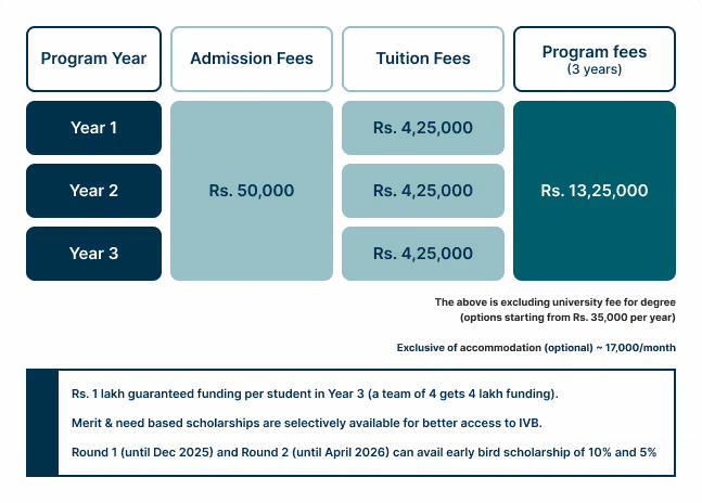 IVB is the place to groom entrepreneurs and intrapreneurs, with skills, network, co-founders, investment, and mentorship. Our flagship 3 year UG program (full-time, offline) is uniquely designed for superior outcomes, and ultra flexible so you can carve your own path